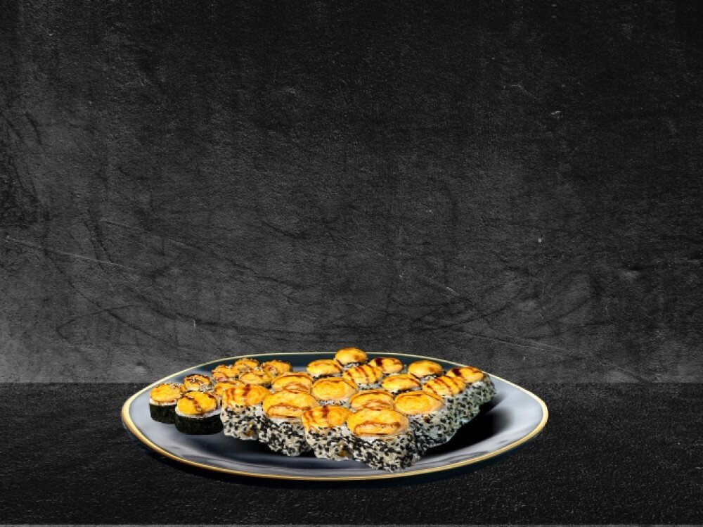 🍣 Запечённый хасамаки с тунцом: Рис, нори, тунец, сырная шапочка, соус терияки, кунжут - 150 гр.